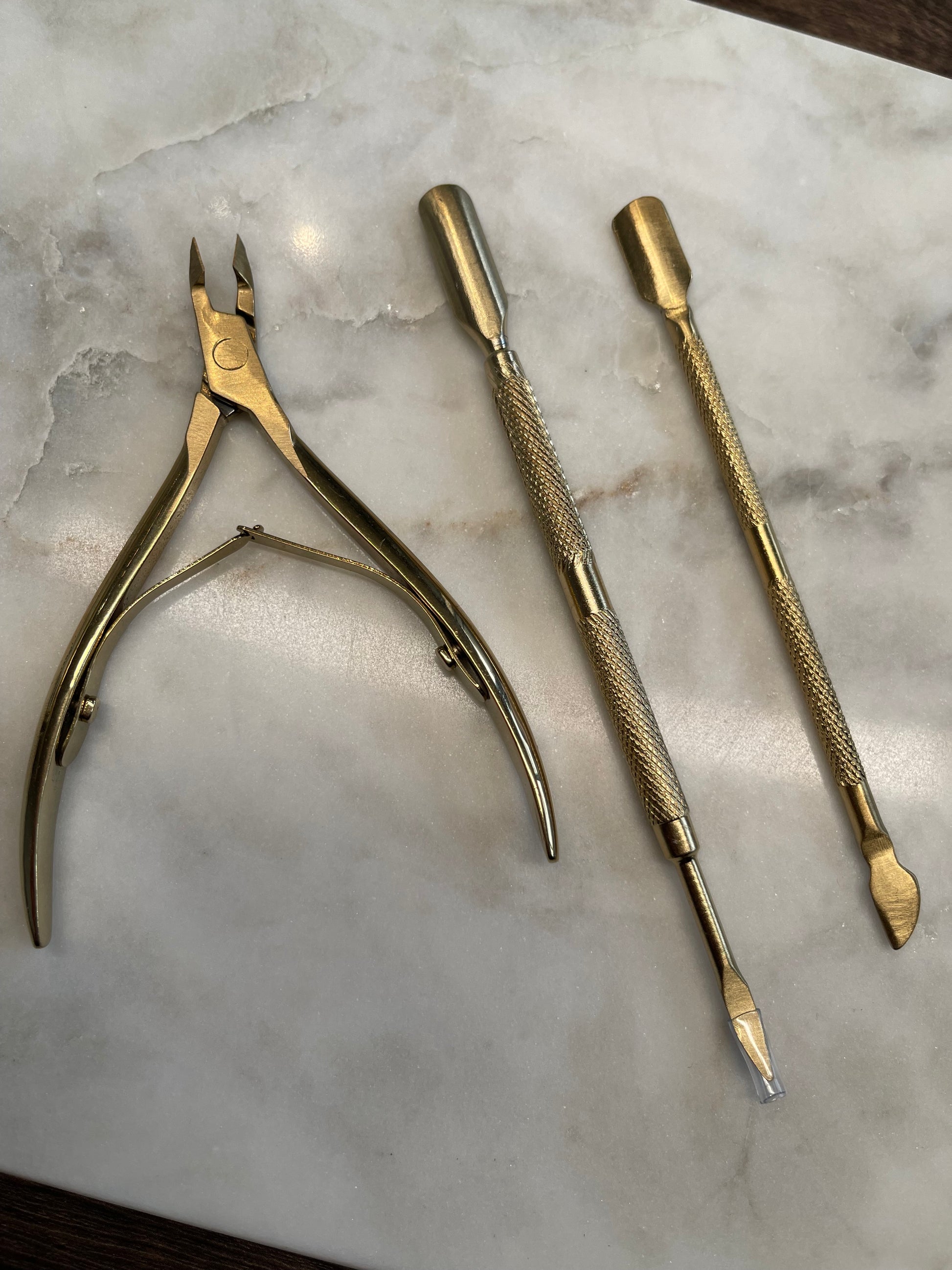 Breng jouw nagelverzorging naar een hoger niveau met deze elegante, goudkleurige 3-delige manicure set. Perfect voor zowel professioneel gebruik als thuisgebruik, deze hoogwaardige tools zijn ontworpen voor precisie, comfort en duurzaamheid. De set bestaat uit: