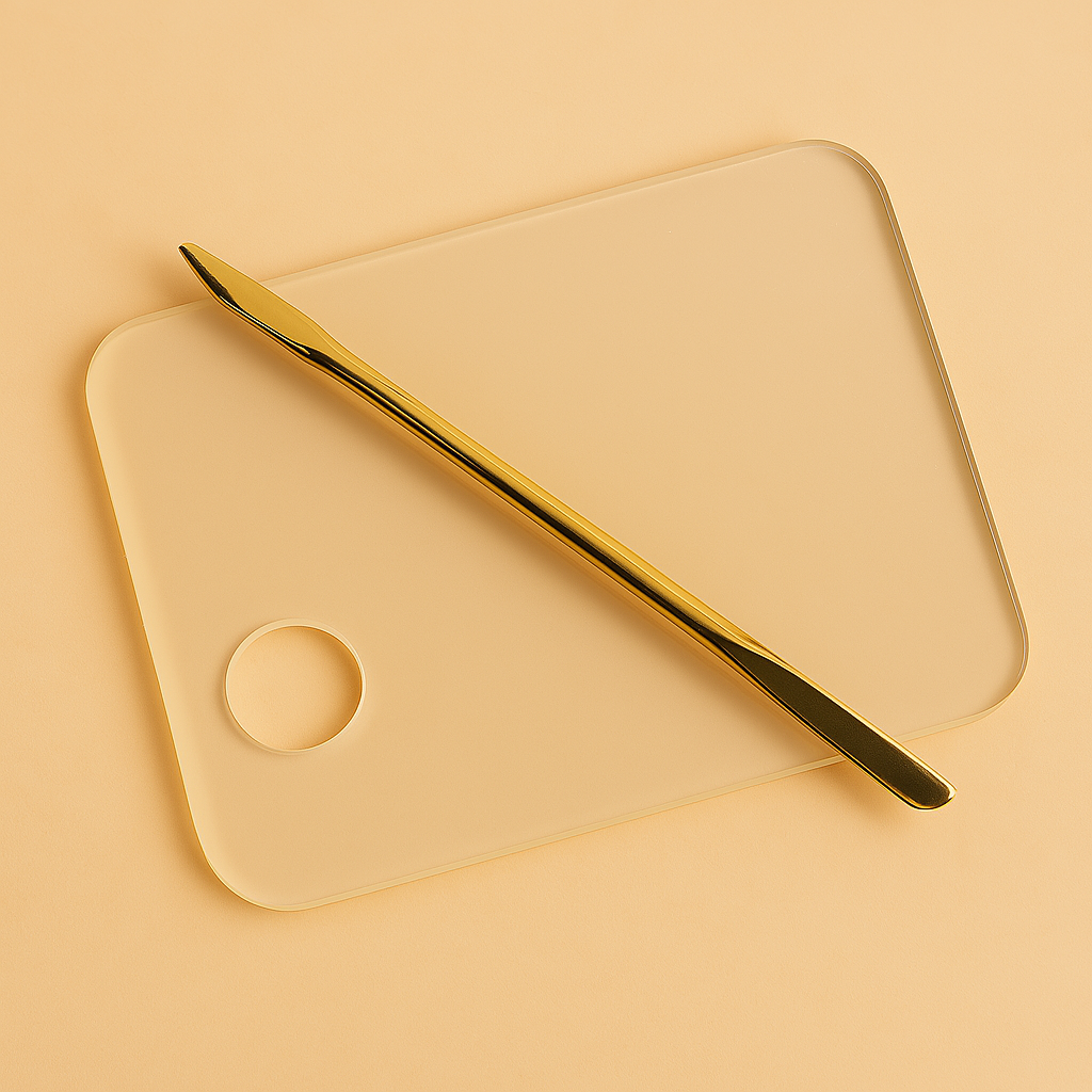 Voeg een vleugje elegantie toe aan je salon of nageltafel mt dit stijlvolle gouden mail art palette! gemaakt van roestvrij staal met een hoogglans gouden afwerking. Ideaal voor het mengen van gel, gellack en verschillende mailart kleuren en substanties. Zo heb je alles bij de hand om geweldige creaties te maken.